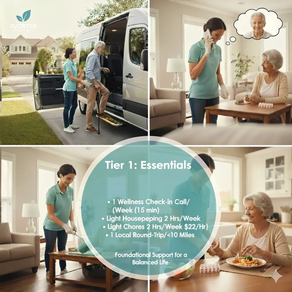 Whether you choose our Essentials plan or Elite Wellness package, you’re not just signing up for services — you’re joining a community that puts seniors first.